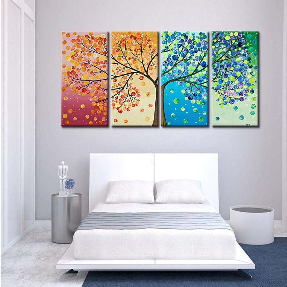 Diuspeed Peinture Murale Bricolage Peinture à lhuile de Bricolage sans Cadre Quatre Vie Couleur Arbre de Toile Murale Art décoration Murale de la Maison Ameublement et décoration Décoration de la maison